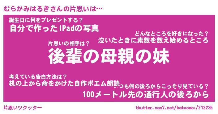 | 恥ずかしいあだ名 | 『プリティーむらかみはるき』『むらちん』 |