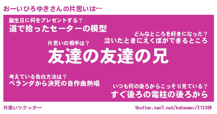 | 意味不明あだ名 | 『ペロリンおーいひろゆき』 |