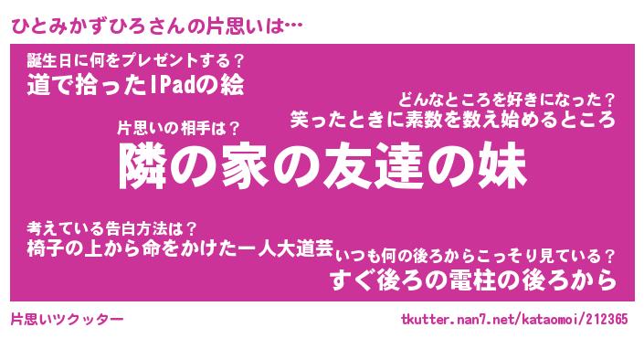 | 2回繰り返すあだ名 | 『ひとひと』『ひひとと』『かたかた』 |