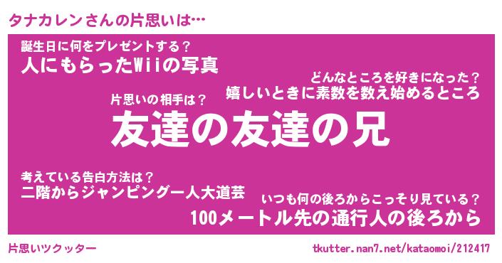 | ヒーロー風カッコイイあだ名 | 『スーパータナカレン』『天弓騎士タナ』 |