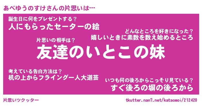 | 胡散臭い通販商品みたいなあだ名 | 『億万長者になれる水晶球…その名も「あべゆうのすけ」』 |