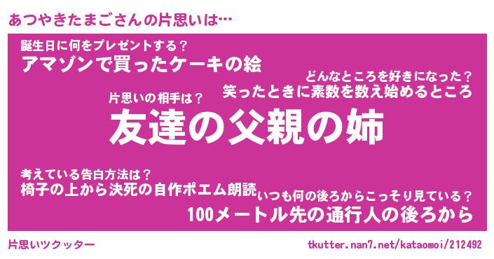 | 胡散臭い通販商品みたいなあだ名 | 『億万長者になれるブレスレット…その名も「あつやきたまご」』 |