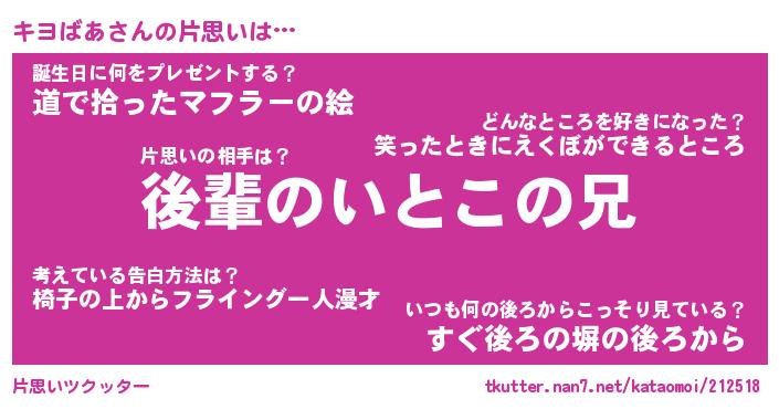 | 胡散臭い通販商品みたいなあだ名 | 『モテモテ間違いなし水晶球…その名も「キヨばあ」』 |