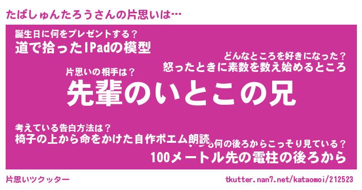 | 胡散臭い通販商品みたいなあだ名 | 『モテモテ間違いなし水晶球…その名も「たばしゅんたろう」』 |