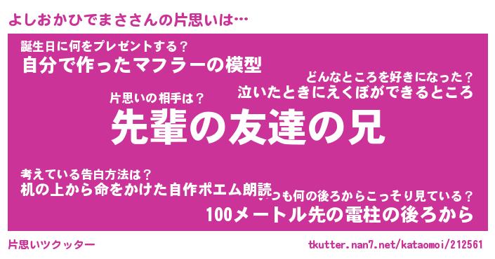 | 女子向けラノベタイトル風あだ名 | 『よしおかひでまさ姫と円卓の騎士』 |
