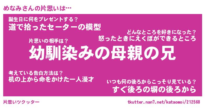 | ファンタジー風あだ名 | 『メナフェル』『エターナルメナミー』 |