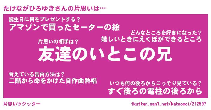 | ヘコむあだ名 | 『たけもー』『つくし』『たけを』 |