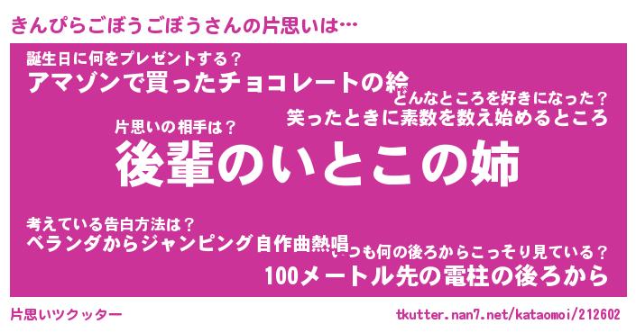 | ヘコむあだ名 | 『きんもー』『酢こんぶ』『きんを』 |