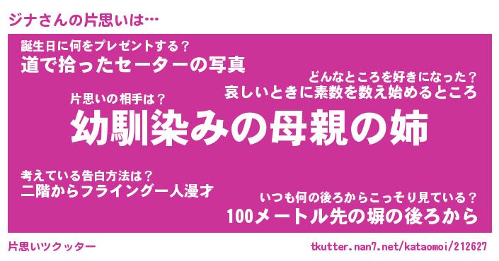 | ヘコむあだ名 | 『ジナにー』『なまこ酢』『ジナっ子』 |