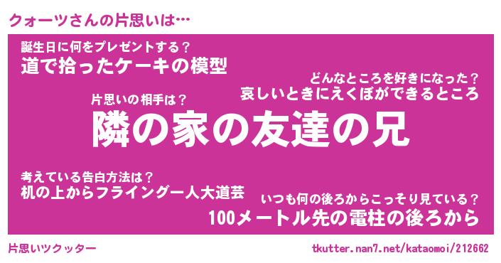 | 胡散臭い通販商品みたいなあだ名 | 『必ず成功する霊験あらたかなお札…その名も「クォーツ」』 |