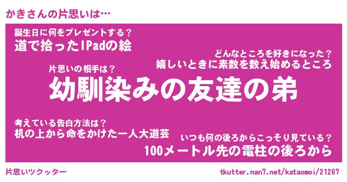 | ヘコむあだ名 | 『かきっふぃ~』『豆乳』『かきを』 |