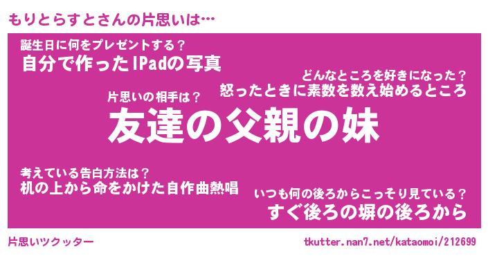 | ヘコむあだ名 | 『もりふぇ~』『レバニラ』『もりを』 |