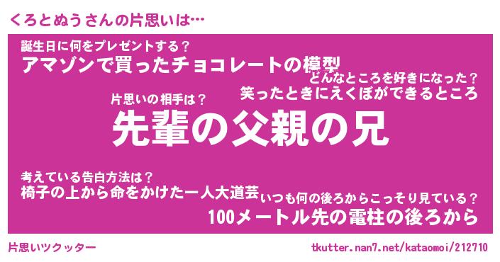 | 恥ずかしいあだ名 | 『プリティーくろとぬう』『くろっちょ』 |
