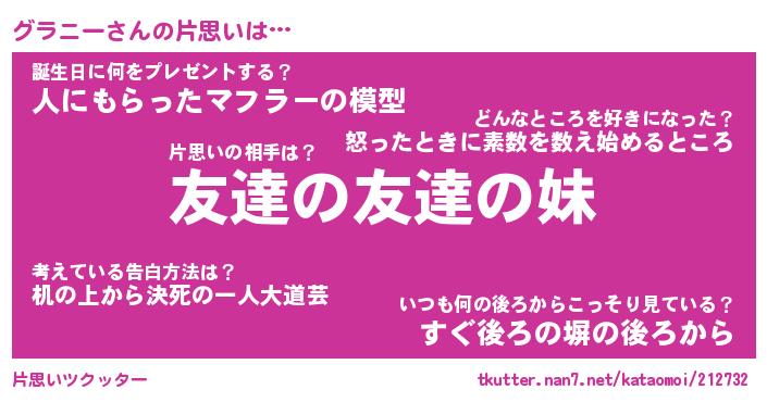 | 意味不明あだ名 | 『ペロリングラニー』『永久保存グラニー』 |