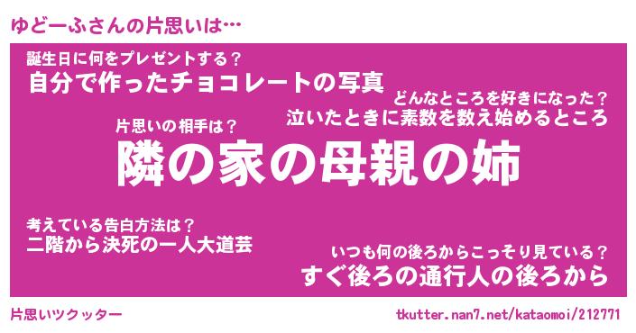 | ヘコむあだ名 | 『ゆどにー』『牛乳』『ゆどを』 |