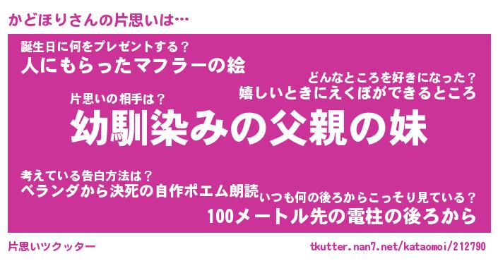 | 2回繰り返すあだ名 | 『かどかど』『かかどど』『いじいじ』 |