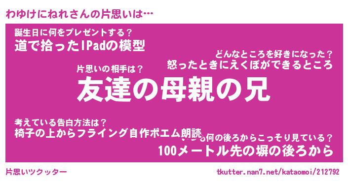 | 胡散臭い通販商品みたいなあだ名 | 『億万長者になれるブレスレット…その名も「わゆけにねれ」』 |