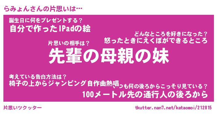 | ヘコむあだ名 | 『らみにー』『つくし』『らみっちょ』 |