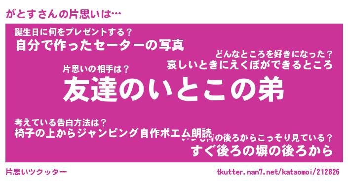 | ヘコむあだ名 | 『がともー』『牛乳』『がとぷりん』 |