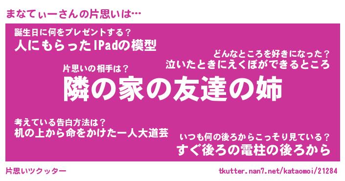 | 胡散臭い通販商品みたいなあだ名 | 『必ず成功する霊験あらたかなお札…その名も「まなてぃー」』 |