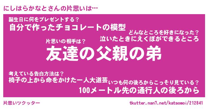 | 胡散臭い通販商品みたいなあだ名 | 『億万長者になれる水晶球…その名も「にしはらかなと」』 |