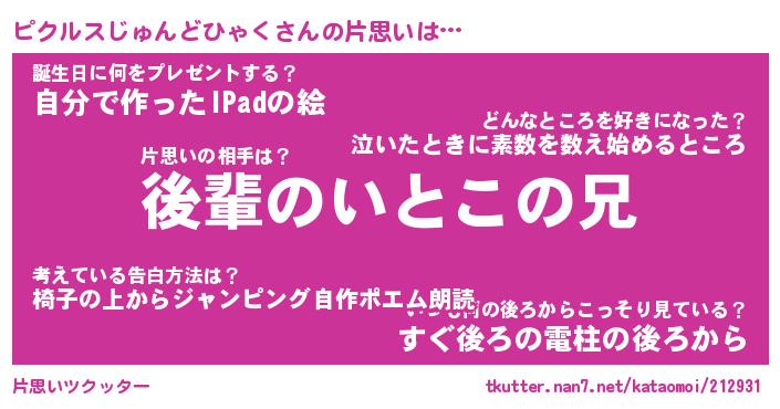 | 意味不明あだ名 | 『ペロリンピクルスじゅんどひゃく』 |