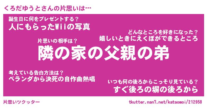 | 恥ずかしいあだ名 | 『プリティーくろだゆうと』『くろっちょ』 |
