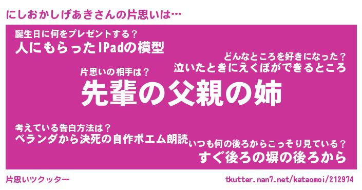 | ツイッター | にしおかしげあきさんのツイッターID『katatsumuri_star』 |