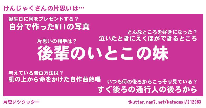 | ファンタジー風あだ名 | 『ケンフェル』『エターナルケンジャクー』 |