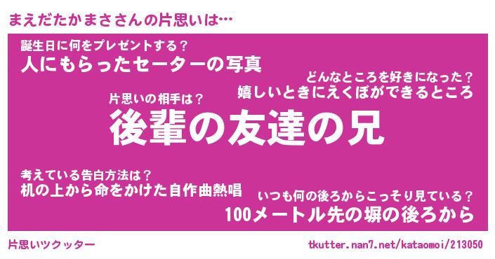 | ヘコむあだ名 | 『まえもー』『なまこ酢』『まえっ子』 |