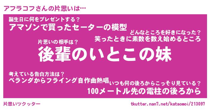 | 胡散臭い通販商品みたいなあだ名 | 『モテモテ間違いなし霊験あらたかなお札…その名も「アフラコフ」』 |