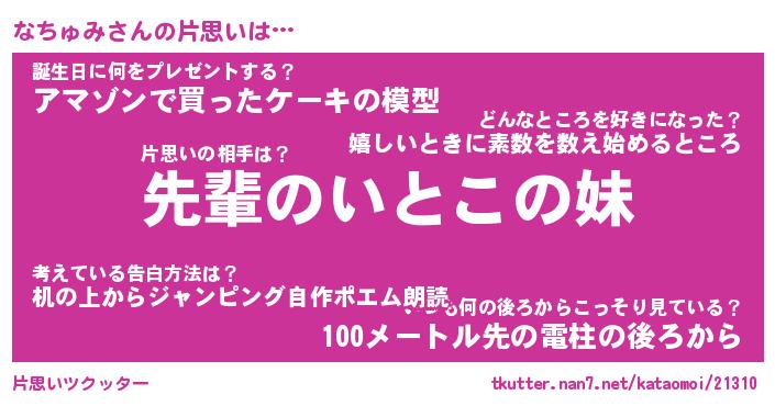 | 胡散臭い通販商品みたいなあだ名 | 『モテモテ間違いなし水晶球…その名も「なちゅみ」』 |
