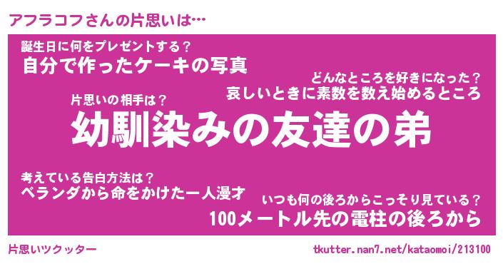 | ヘコむあだ名 | 『アフっふぃ~』『つくし』 |
