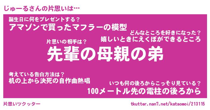 | ヘコむあだ名 | 『じゅにー』『なまこ酢』『じゅお』 |