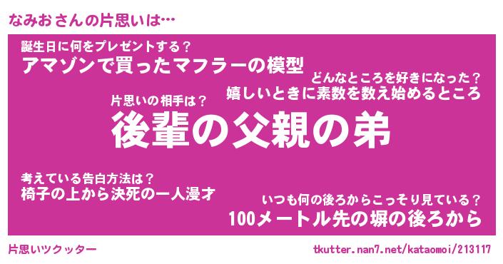 | ヘコむあだ名 | 『なみにゅー』『なまこ酢』 |