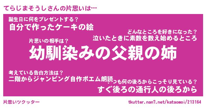 | 男性向けラノベタイトル風あだ名 | 『てらじまそうしの憂鬱』 |