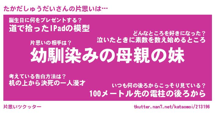 | 肩書あだ名 | 『たかだしゅうだい社長』 |