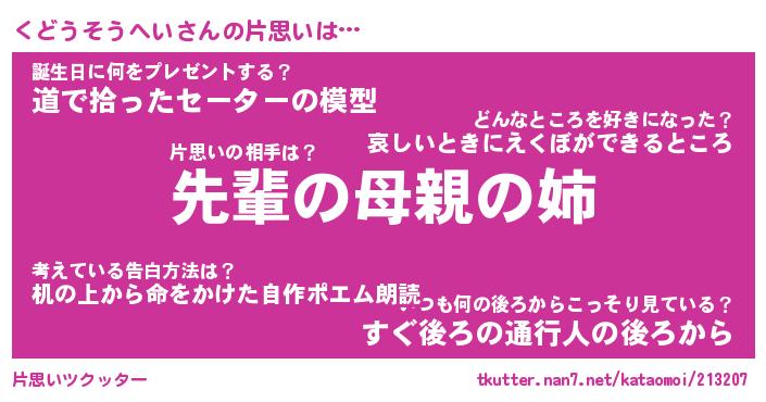 | ヘコむあだ名 | 『くどにー』『豆乳』『くどぷりん』 |