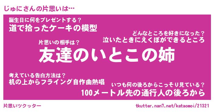 | 意味不明あだ名 | 『ペロリンじゅに』『じゅにフォーエバー』 |