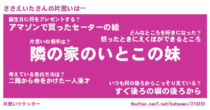 | 胡散臭い通販商品みたいなあだ名 | 『必ず成功する霊験あらたかなお札…その名も「ささえいた」』 |