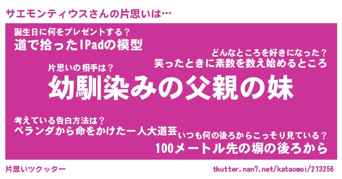 | 男性向けラノベタイトル風あだ名 | 『サエモンティウスの憂鬱』 |