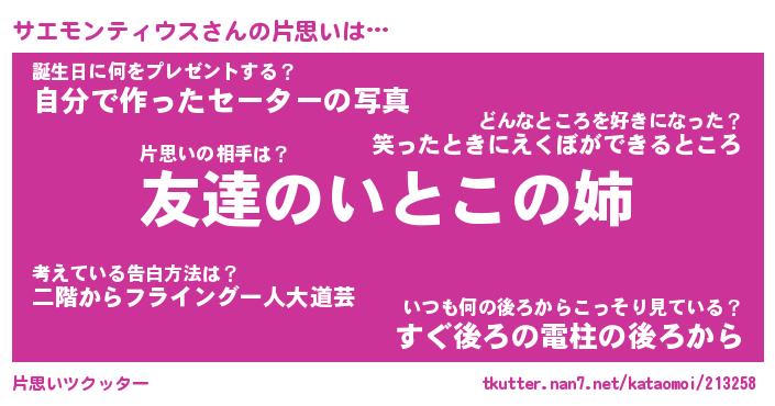 | 恥ずかしいあだ名 | 『プリティーサエモンティウス』 |