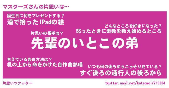 | 男性向けラノベタイトル風あだ名 | 『マスターズの憂鬱』 |