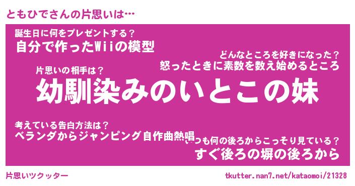 | 男性向けラノベタイトル風あだ名 | 『ともひでの憂鬱』 |