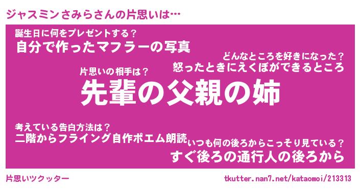 | 胡散臭い通販商品みたいなあだ名 | 『モテモテ間違いなし水晶球…その名も「ジャスミンさみら」』 |