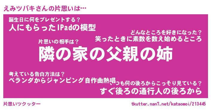| 男性向けラノベタイトル風あだ名 | 『えみツバキの憂鬱』 |