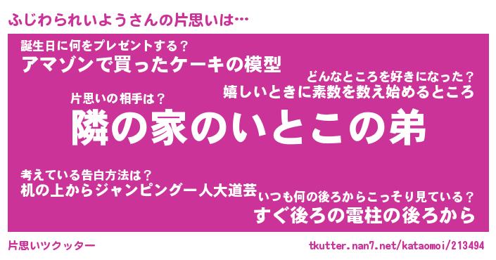 | ヘコむあだ名 | 『ふじもー』『酢こんぶ』『ふじを』 |
