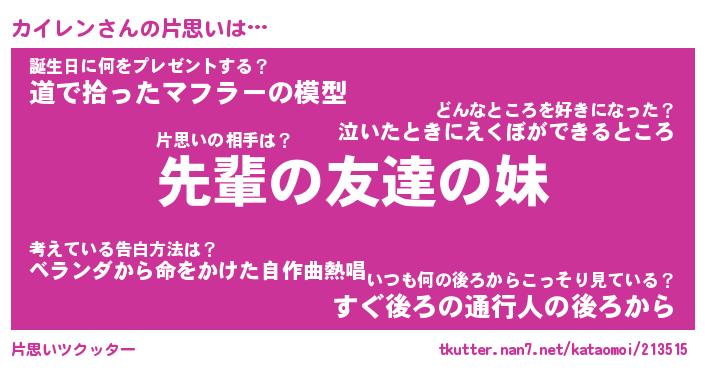 | 意味不明あだ名 | 『ペロリンカイレン』『永久保存カイレン』 |