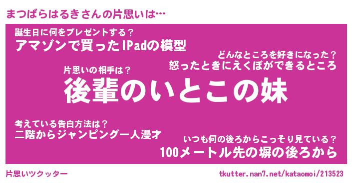 | ヒーロー風カッコイイあだ名 | 『スーパーマツバラハルキ』 |
