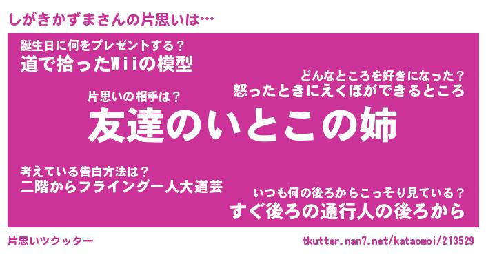 | 胡散臭い通販商品みたいなあだ名 | 『億万長者になれる水晶球…その名も「しがきかずま」』 |